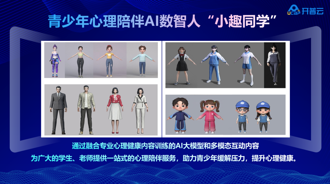 开普云子公司成皆文趣星球推出的青少年心扉随同AI数智东说念主——小趣同学,旨在通过AI技艺为青少年提供科学、专科、方便的心扉健康干事,其筹谋理念与《中国儿童发展节录(2021-2030年)》冷漠的“构建儿童心扉健康栽种、计议干事、评估调治、危急侵略和心扉扶植众人干事鸠集”等筹商条目高度契合,已在著名学府成皆七中(东说念主工智能限度顶尖学者李飞飞素养母校)东部学校见效商用落地。